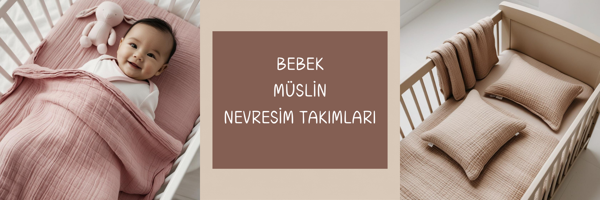 Bebek Nevresim Takımı Müslin Bej – Müslin Lastikli Çarşaflı